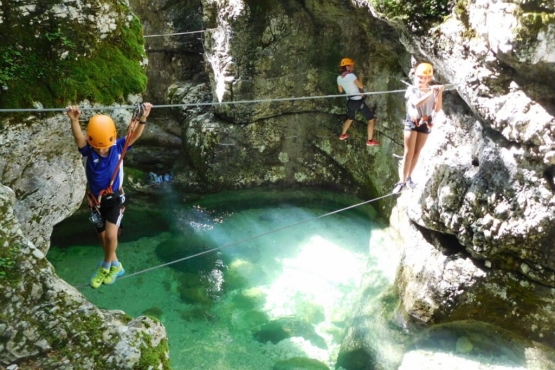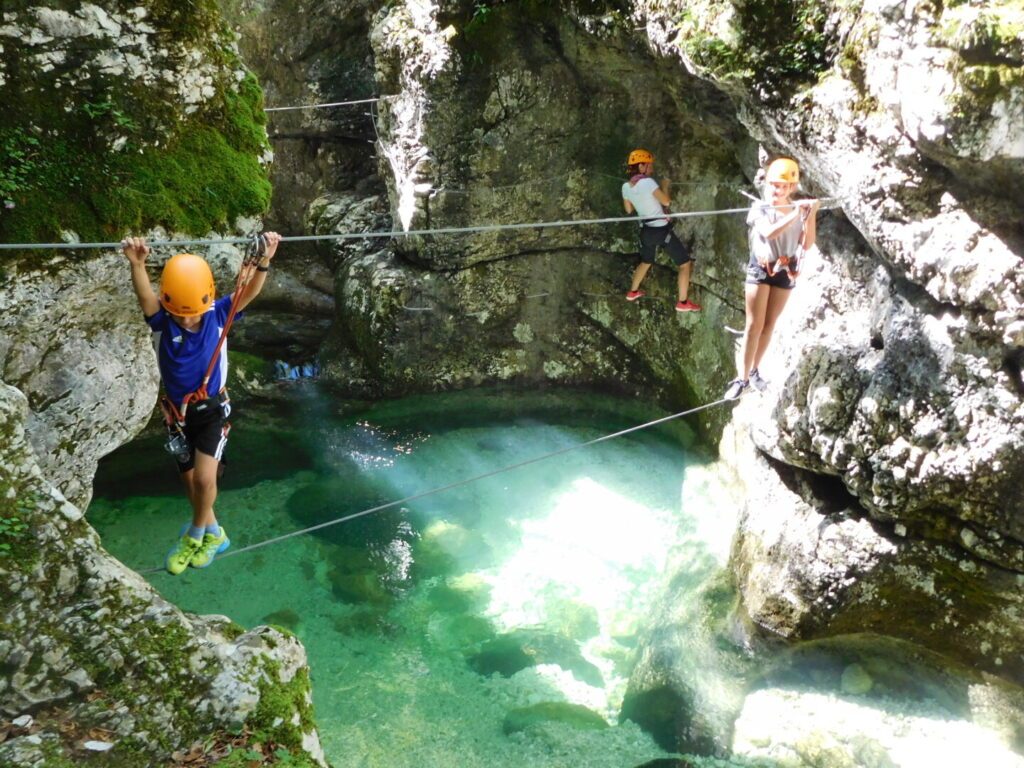 Za vse tiste, ki si želijo dodatno mero adrenalina lahko omogočimo drzen spust po jeklenicah z enkratnim razgledom na Bovec in okoliške vasi ter hribe. Ko boste stopili na platformo boste kaj hitro že v zraku 200 metrov nad tlemi in polni adrenalina drveli proti drugi strani s hitrostjo med 50 in 60 km/h. Tega občutka pa ne boste doživeli le enkrat ampak kar petkrat.